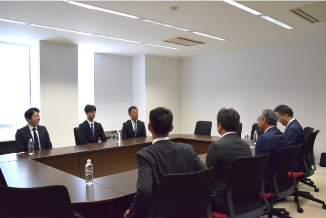 東北楽天ゴールデンイーグルスの球団関係者の方々がご来訪し、懇談後、記者会見に臨みました。