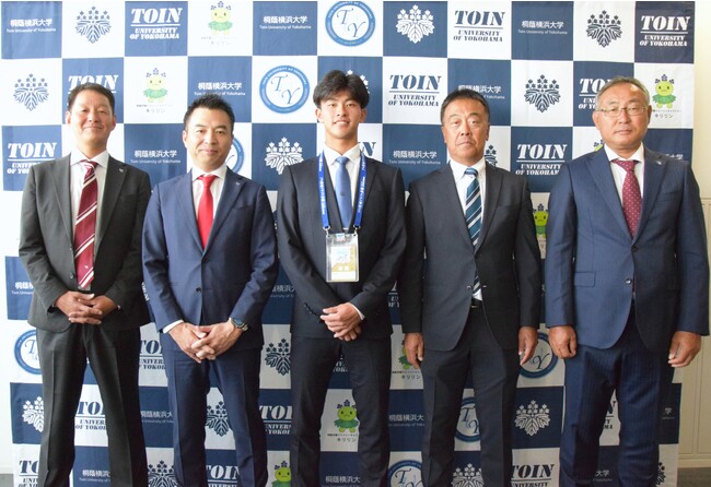 10月27日(金)桐蔭横浜大学にて、プロ野球ドラフト会議で東北楽天ゴールデンイーグルスより1位指名を受けた古謝 樹選手(法学部4年)が、指名挨拶を受けました。
