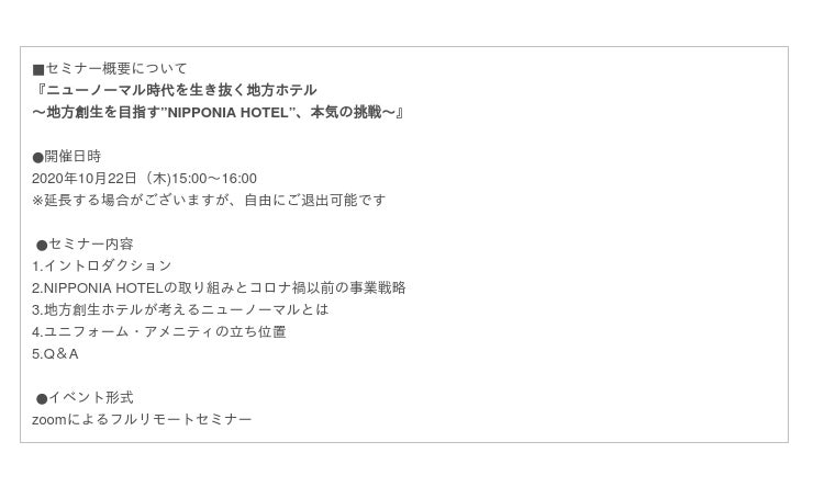 【シタテル、ホテル業界向けウェビナー 10/22(木)】ニューノーマル時代を生き抜く地方ホテル