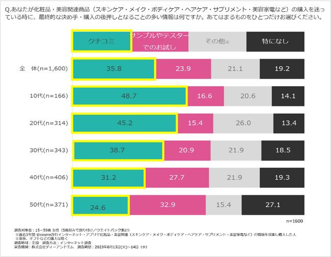 ※直近1年間@cosme含むインターネット・アプリで化粧品・美容関連(スキンケア・メイク・ボディケア・ヘアケア・サプリメント・美容家電など)の情報を収集し購入した人