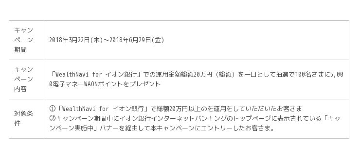 キャンペーンページURL:https://www.aeonbank.co.jp/wealthnavi/campaign/180322_01.html