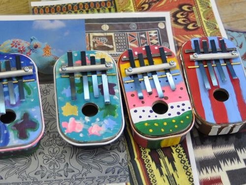 空き缶を使ってアフリカ発祥の民族楽器「カリンバ」を作るワークショップ。