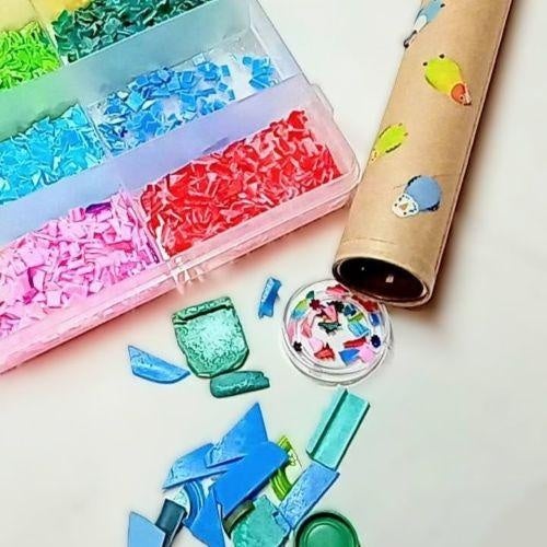 宮城県の砂浜に流れ着いた海洋プラスチックを使って、カラフルな万華鏡を作ろう