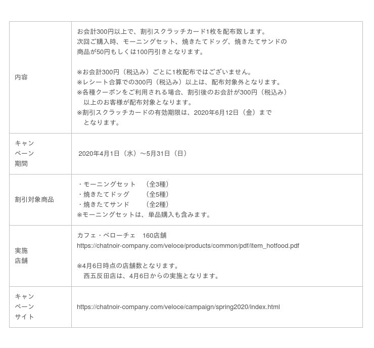 株式会社シャノアール(本社:東京都豊島区、代表取締役社長:友成勇樹)は、「春の割引スクラッチキャンペーン」を、全国の「カフェ・ベローチェ」にて2020年4月1日(水)より開催します。