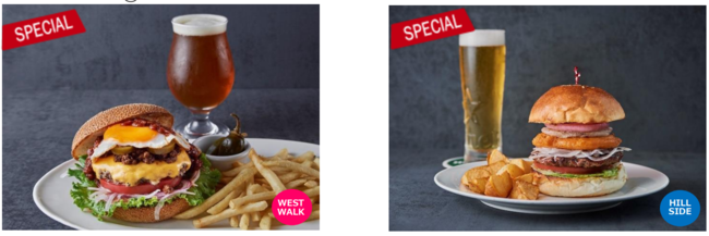 至極のバーガーをより一層お楽しみいただけるように、個性豊かなビールとのペアリングも提案しています。「TUSK(タスク)」のギネカツバーガーには、ソースや肉の漬け込みにも使用されているギネスビールを、「ヒルズ ダル・マット」の【極】TERIYAKIには柑橘系の香りと苦みのバランスが絶妙なイタリアのプレミアムビールのペローニが相性抜群です。極上のグルメバーガーと良く冷えたビールで至福のひと時をお楽しみください。