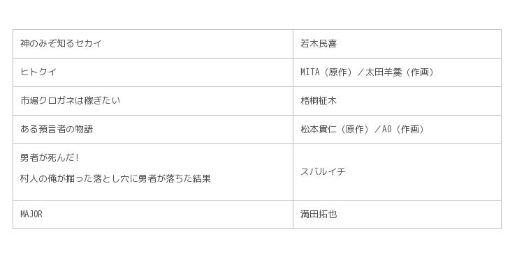 その他、「マンガワン」チャンネルで提供予定のタイトル一覧は以下の通りです。