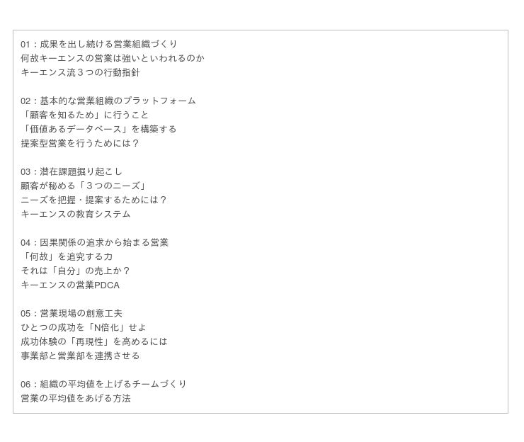 ・「キーエンス流」といえど魔法のように売れる特別なメソッドがあるわけではなく、目標や目的を明確にし、共有し、発展していける仕組みを持った組織にしていくという、ある意味当たり前すぎるほど当たり前なことをしっかりと実践できるかどうかだという点は、逆説的に衝撃でした。