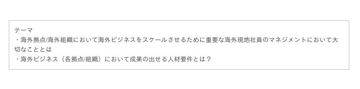 対象者 :海外事業部責任者/担当者、人事部責任者/担当者、海外駐在員/海外駐在予定者