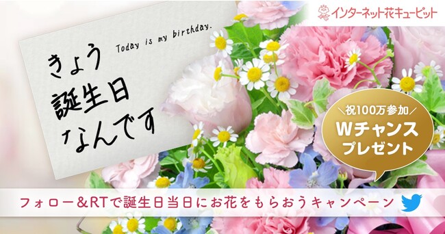 応募100万件突破を記念してWチャンスでプレゼント 誕生日当日中にお花が届く「きょう誕生日なんですキャンペーン」