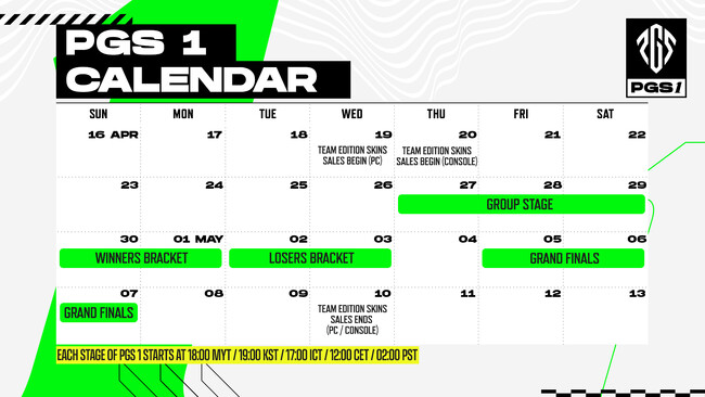 「PGS 1」すべての試合は4月27日から5月7日の午後7時から始まり、『PUBG』 eスポーツ公式YouTubeとTwitch、AfricaTV、NAVER TVチャンネルから視聴することができます。