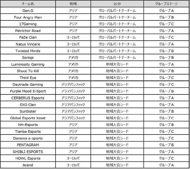 日本の「PUBG JAPAN CHAMPIONSHIP Phase1」をはじめとする地域大会で優秀な成績を収めた16チームに加え、日本の「SunSister」等、今年初めに「グローバルパートナーチーム(Global Partner Team)」プログラムに選ばれた8チームが参加します。