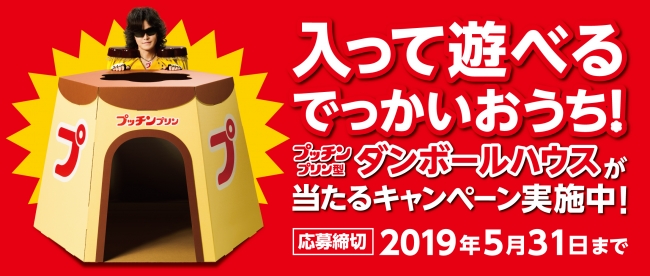 2019年4月15日(月)より、「入って遊べるでっかいおうち!プッチンプリン型ダンボールハウスが当たるキャンペーン」と題して、プレゼントキャンペーンを実施いたします。詳細はキャンペーンサイト(https://form.ambassador.jp/get/glico/pucchin/house)をご覧ください。