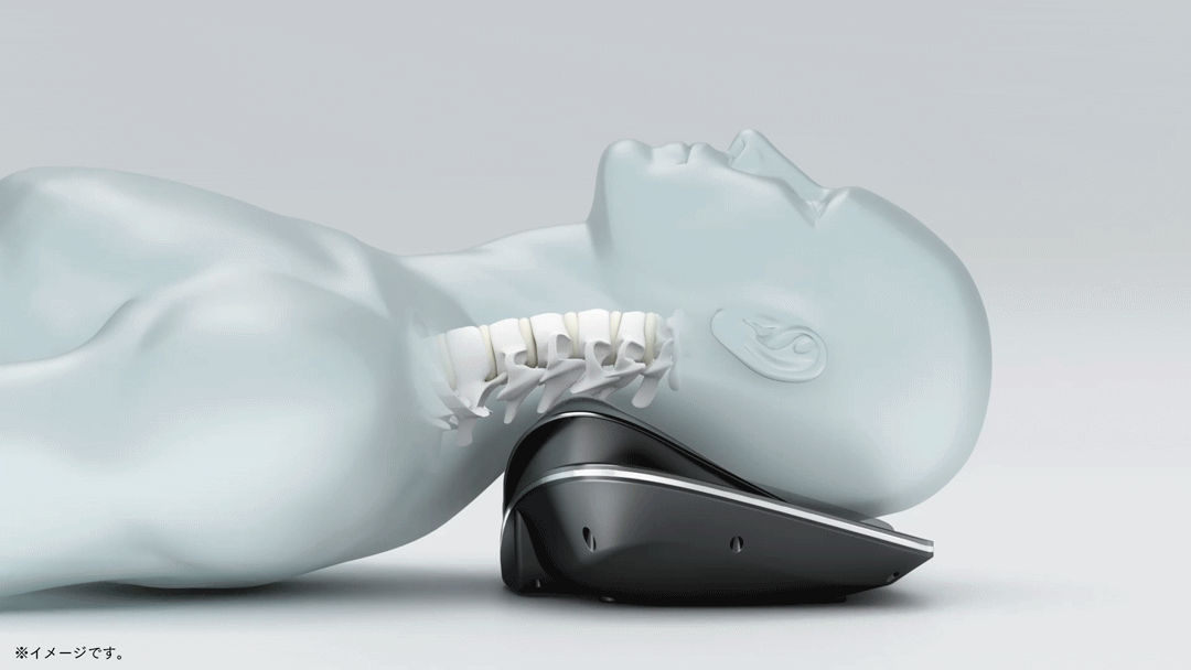 温熱やEMSではケアできない骨へアプローチ。約40度の角度まで牽引可能なダブルエアバック構造で、まるで整体で受ける施術のように首をやさしく上に持ち上げたり、引っ張ったりする体感を再現しました。固まりがちな首を自然なアーチ状へとサポートすることで、首への負担を軽減し首まわりをラクにします。