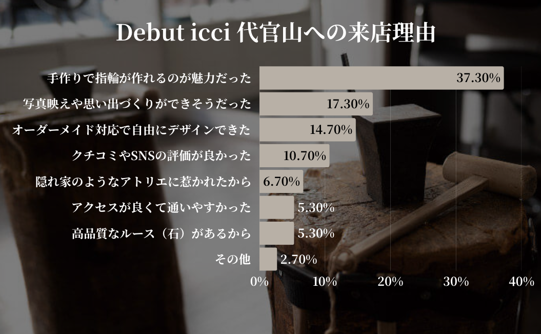 [画像3: https://prcdn.freetls.fastly.net/release_image/102506/87/102506-87-2cee05982333873e6f21284f81db668a-1055x651.png?width=536&quality=85%2C75&format=jpeg&auto=webp&fit=bounds&bg-color=fff ]Debut icci 代官山への来店理由