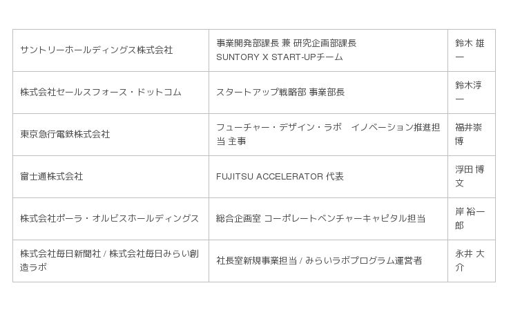 U-25 kansai pitch contest in TOKYO 企業審査員一覧