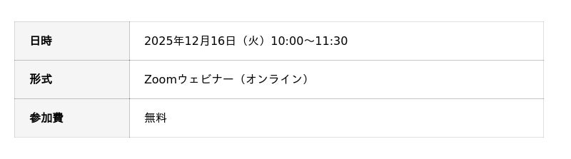 [表: https://prtimes.jp/data/corp/80381/table/89_1_a3f5711ecded54864944811af5473010.jpg?v=202512190915 ]
