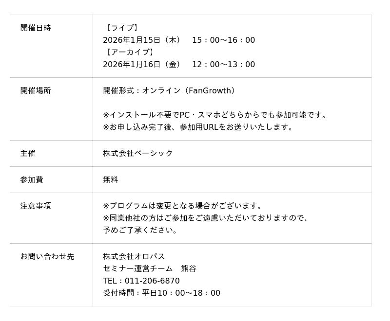 [表: https://prtimes.jp/data/corp/75553/table/91_1_8a998bbbcad5a21a39a74455493c98f6.jpg?v=202601091045 ]