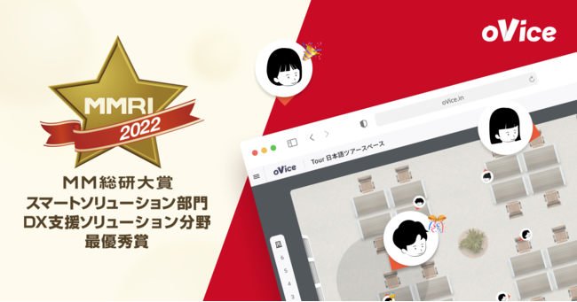 oVice株式会社(本社:石川県七尾市、代表取締役CEO:ジョン・セーヒョン)は、アバターで自由に交流できる2次元のバーチャル空間「oVice(オヴィス)」が「MM総研大賞 2022」のスマートソリューション部門 DX 支援ソリューション分野において最優秀賞を受賞したことをお知らせします。