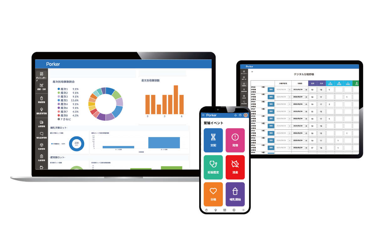 ”次世代に食肉文化をつなぐ”を企業理念に掲げ、「豚肉の安全・安定供給と養豚産業の環境負荷低減を実現すべく、養豚業界にICTによる情報可視化ツール「Porker」を提供。IoTセンサーの開発・提供を行うなど、養豚農家の作業効率改善・生産性改善・疾病対策などに取り組んでいます。