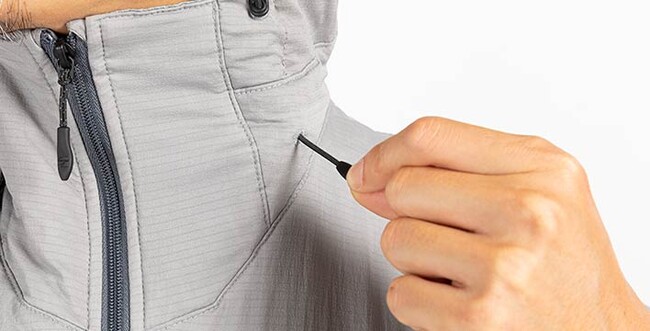 表地に軽量なストレッチ布帛(織物)生地を採用。それに加えて、身体の動きにフィットする立体パターンによって、動きやすさと着心地の軽さを両立しています。