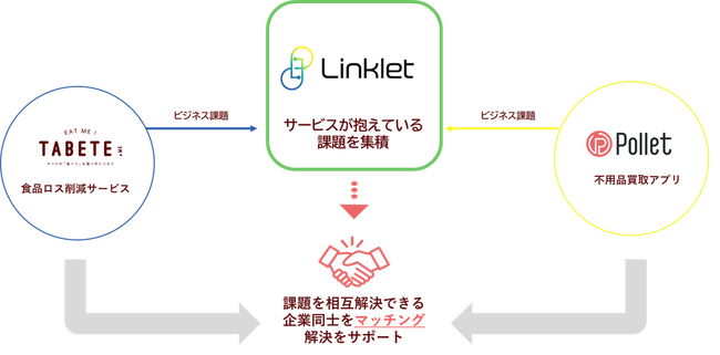 そのような中、Linkletとお取引のある、約100社の取引先が持つ課題から、相互的な課題の解消が見込める別の取引先をお繋ぎするビジネスマッチングの企画をスタートいたしました。通常のビジネスマッチングサービスでは、相手企業の実態が分かりづらかったり、成果を生むまでに一定の時間がかかったりする等の懸念点も生じますが、Linkletの独自の企画力や販促手法が加わることで、取引先企業様は折衝や企画の手間をかけずに、より具体的な取り組みをスピーディーかつ低コストでスタートすることができ、安心感を持って経営課題の解決を図ることができると思料しております。
