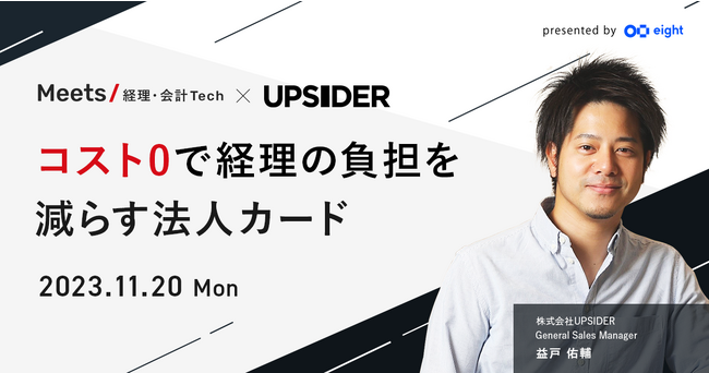 「挑戦者を支える世界的な金融プラットフォームを創る」をミッションに、法人カード「UPSIDER」(以下、UPSIDER)およびビジネスあと払いサービス「支払い.com」を提供する株式会社UPSIDER(代表取締役:宮城徹・水野智規、本社:東京都港区、以下 当社)は、Sansan株式会社が11月20日(月)に開催する経理・財務・業務企画部門向けイベント「Meets 経理・会計Tech」(以下 本イベント)に参加し、プレゼンター企業として登壇します。