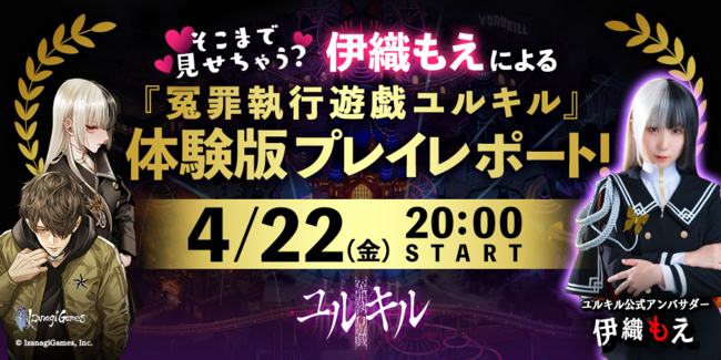 また、無料体験版・配信決定及び4月23日からの舞台上演開始を記念して、2022年4月22日20時(JST)より、ユルキル公式アンバサダー・伊織もえが出演する、体験版先行プレイのライブ生配信をいたします。