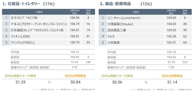 業種別傾向は、「化粧品・トイレタリー」、「薬品・医療用品」、「食品」が高評価。