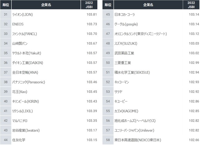 JSBI 31〜100位(SDGs貢献イメージ得点+SDGs評価得点)