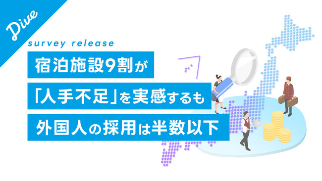 全国約4,600箇所の宿泊施設へ人材派遣・紹介事業を行う株式会社ダイブ(東京都新宿区 代表取締役:庄子潔 以下、ダイブ)と、全国旅館ホテル生活衛生同業組合連合会青年部(東京都千代田区 青年部部長:塚島英太)は、宿泊業界の人手不足の現状を把握すべく、宿泊施設と全国旅館ホテル生活衛生同業組合連合会の会員を対象に、共同調査を実施したことをお知らせいたします。