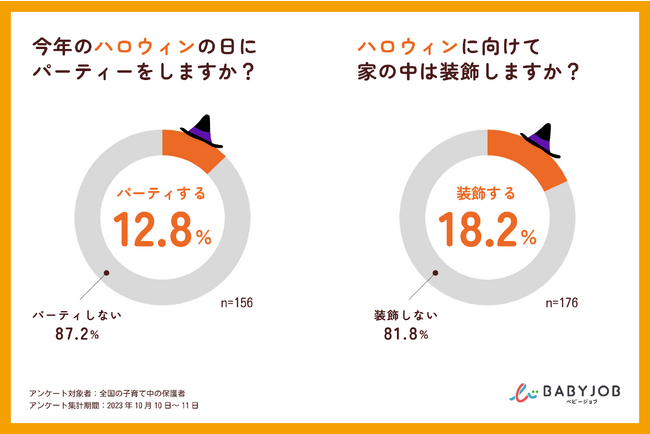 【ハロウィンに関するアンケート調査】「子どもに仮装させる予定」と回答したのは3割超!一方で、パーティや家の装飾をする人は2割を下回る結果に。