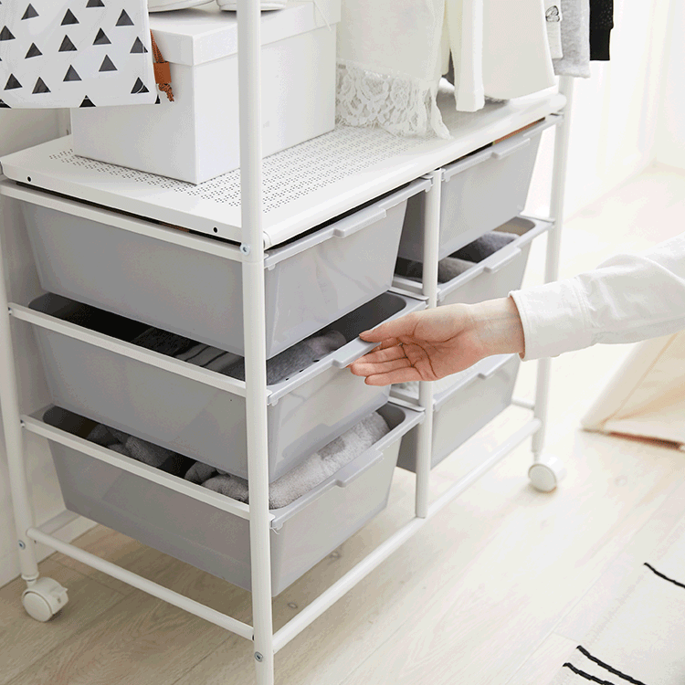 散らかりがちな子供部屋の“必須アイテム”として話題となっている「キッズハンガーラック」が、TOP3に初のランクイン!インテリアに馴染むシンプルな見た目でありながらも、ハンガーポールに、オープンスペースと引き出しが6杯も付いた豊富な機能付きで、洋服、バッグ、帽子、小物など様々な物を幅広くすっきり収納できます。また、ラックの重量は約6.5kgと女性でも軽々持てる重さになっている上、ストッパー固定もできる4つのキャスターが付いているので、お部屋中どこでも移動が楽ちん♪