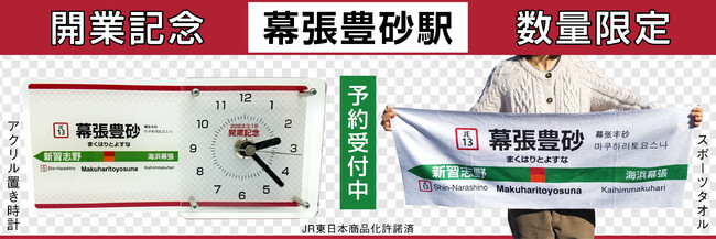 (有)アサミズカンパニーは、JR幕張豊砂駅 開業記念として記念の時計、タオルの予約販売を開始します。数量限定なので記念になる一品です。