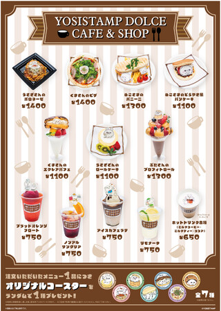 今回のイベントでは、カフェ店員に扮したヨッシースタンプのキャラクターたちの新作アートも制作。新作アート商品から定番商品まで販売されるほか、オリジナルメニューやドリンクが楽しめるコラボカフェとなります。