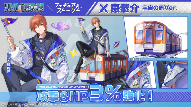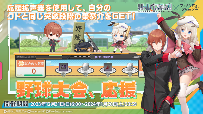 Nuverse株式会社が運営する、フィギュアを題材にしたスマートフォン向けRPG『フィギュアストーリー(以下「ギアスト」)』が、2023年12月31日(日)より、恋愛アドベンチャーゲーム「リトルバスターズ!」とのゲーム内コラボレーションイベントを実施します。本コラボレーションイベントでは、「リトルバスターズ!」のキャラクター「クド(CV:若林直美)」「棗恭介(CV:緑川光)」のフィギュア及びスキン(着せ替え)や、シナリオイベント等を実施します。