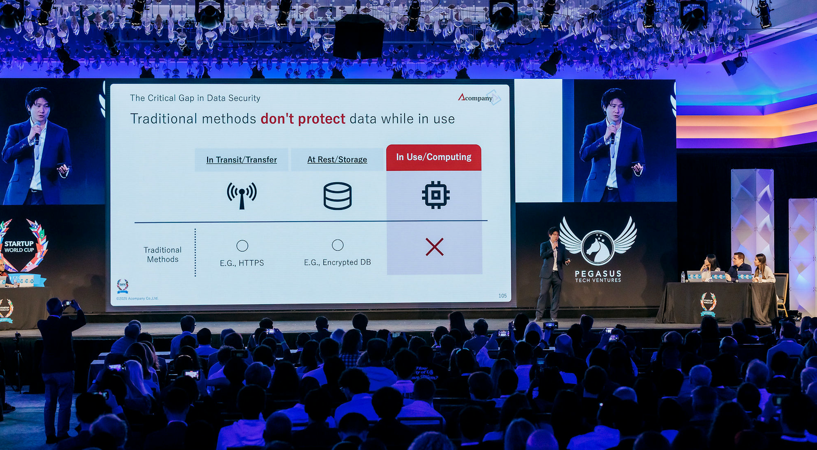 Acompanyは準決勝・決勝戦において、生成AIのセキュリティ課題を解決する、生成AIの安全装備SaaS「AutoPrivacy AI」を紹介しました。同サービスは秘密計算技術を利用しており、機密情報を誰にも開示することなく、安全にAIを活用できます。世界中の企業が生成AIの利用において抱えるデータ保護とAIセキュリティの課題を解決する効果的なソリューションとして、「AutoPrivacy AI」を世界の舞台で高く評価いただきました。