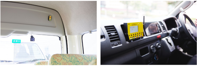 車両の運転席周辺に受信機を、車両後方に送信機を設置。目的地に到着し運転者がエンジンを切ると、受信機にから楽曲が自動再生されます。音楽が流れることで園児たちが到着を感知し、楽しく歌いながらバスを降車することで、運転者や保育士の日々の声かけの負担減にもつなげていきます。