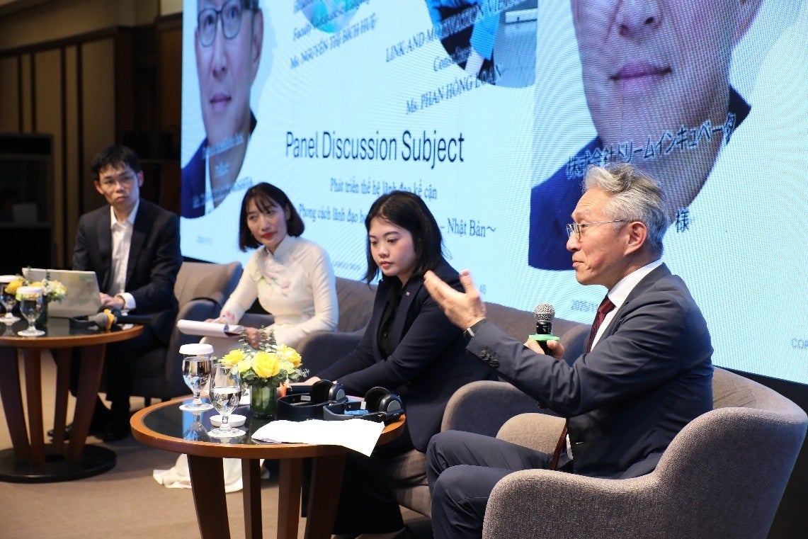イベント後半は、木ノ下氏に加え、企業・教育機関から貿易大学 日本語学部ビジネス日本語学科長 グエン・ティ・ビック・フエ氏、LINK AND MOTIVATION VIETNAM CO., LTD コンサルタント ファン・ホン・ロアン氏が参加し、パネルディスカッションが行われました。