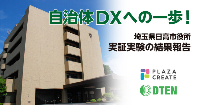 ? 2022年6月配信のプレスリリース:プラザクリエイト、DTENと共に地方自治体DXを推進 〜第一弾として、埼玉県日高市役所で実証実験を開始〜