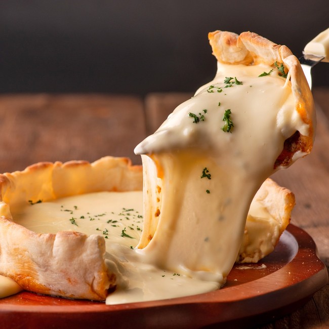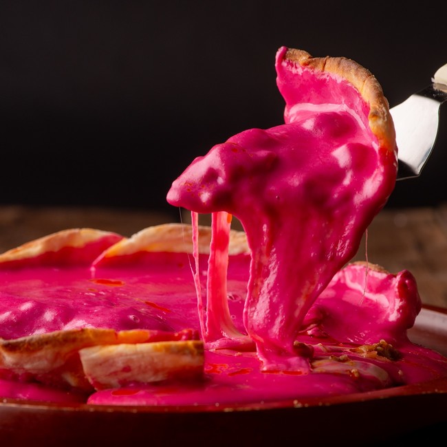 アメリカ・シカゴで人気のB級グルメ「シカゴピザ」。通常のピザとは一味も二味も違うこの”ピザ”は、なんとっても高さがあるのが特徴!高さのある生地の中にたっぷりのチーズと具材が入った濃厚なピザです。最近日本でも人気が高まってきている「シカゴピザ」を食べ歩き、弊社ならでは、唯一無二のオリジナルメニューとして開発致しました。生地をカットした時に溢れ出すチーズはまるで決壊したダムのよう!カラフルな色味を加えたシカゴピザは、まさに”ムービージェニック”抜群の商品となっております。