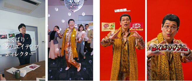 今回の新製品の特徴が「2つの味の組み合わせ」であることを分かりやすく、楽しく伝えるため、古坂大魔王さんとピコ太郎さんを本製品の公式アンバサダーに起用し、本製品誕生までのストーリーをユーモアたっぷりに描いた動画「よくばりダブル 誕生!?篇」や、ピコ太郎さんが「PPAP キットカット よくばりダブルver.」を踊る動画をブランド特設サイト上で2月27日(月)より順次公開します。