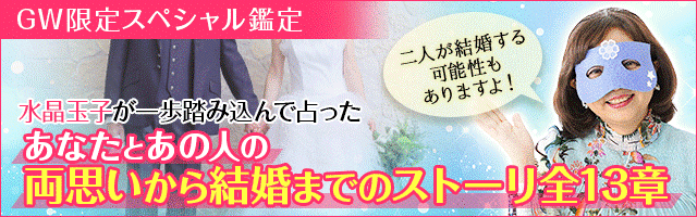 この度、月額公式サイト『水晶玉子 陰陽艶花占』にて『ゴールデンウィーク限定スペシャル鑑定』を公開いたします。この期間でしか見られない気になるあの人との未来を占います。この機会をどうぞお見逃しなく!