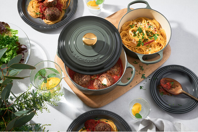 「ル・クルーゼ」は、フランス生まれの世界的キッチンウェアブランド。1925年、北フランス フレノワ・ル・グランに創業。同年に製造を開始した鮮やかなオレンジ色の鋳物ホーロー鍋「ココット・ロンド」が世界的なベストセラーとなる。1991年日本支社設立。“キッチンからテーブルまで”をテーマに、ストーンウェア、TNS(ノンスティックフライパン)、EOS(スチールホーロー鍋)、ワインアクセサリー、ベビーコレクション、ペット用品など幅広いラインナップを世界で展開し、食卓をトータルでコーディネート。フランスの伝統的な製法を守りながら、世界中の食文化やトレンドに沿った革新的な製品を生み出している。