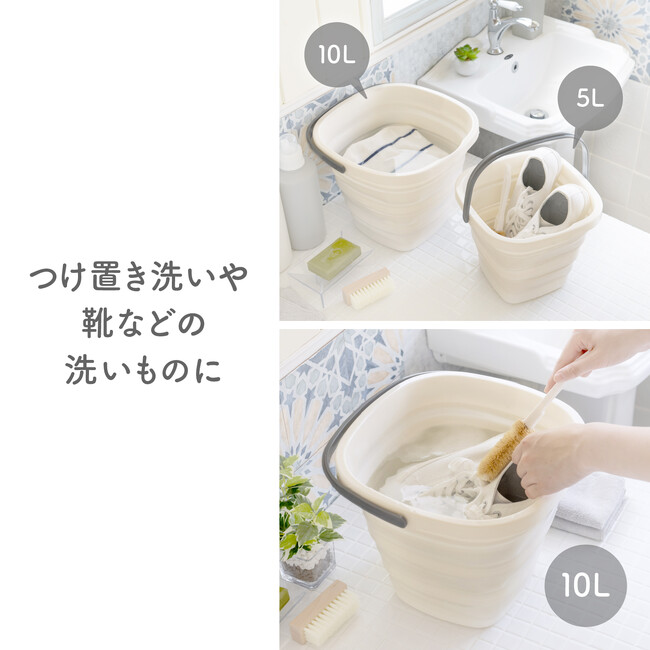 収納に困らないフック付き折りたたみ式バケツ2商品を発売