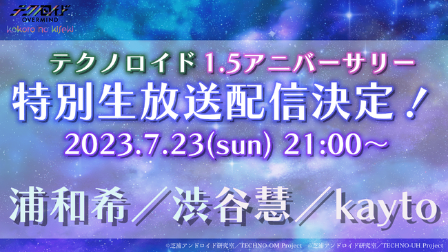 TVアニメ『テクノロイド オーバーマインド』1.5周年生放送を記念し7月23日に特別生放送の配信を実施することが決定いたしました。