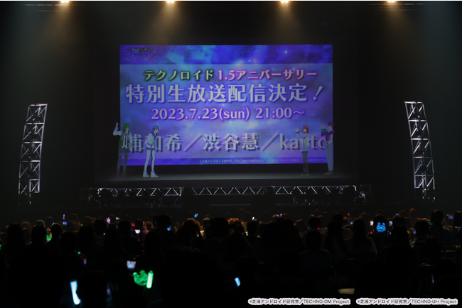 また、お知らせコーナーでは、テクノロイド1.5周年記念の生配信が2023年7月23日に実施されることが発表された。歓声が上がり、テクノロイドの今後に大きな期待へつながりました。詳細の情報については、後日公式HPやTwitter等で告知される予定。