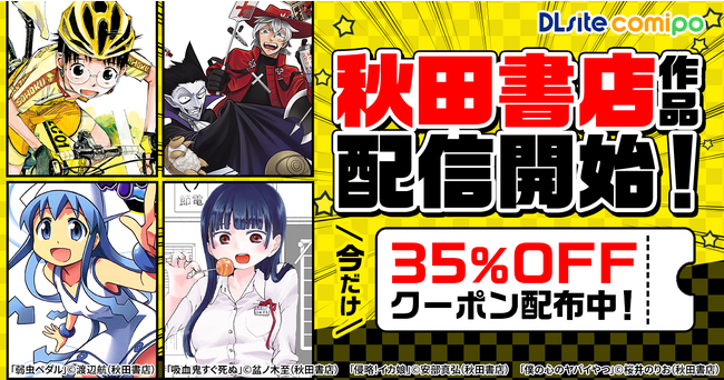 電子コミックストア「DLsite comipo」(株式会社viviON、所在地:東京都千代田区、代表取締役:明石耕作)において、4月27日(木)より秋田書店の手掛ける約3,000作品、約1.6万冊がラインナップに加わりました。これを記念して、同社作品の購入に利用可能なクーポンを配布します。
