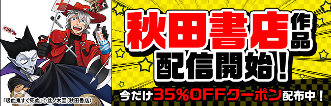 秋田書店作品のお取扱いスタートを記念して、同社作品の購入時に使えるお得なクーポンの配布をスタートしました!