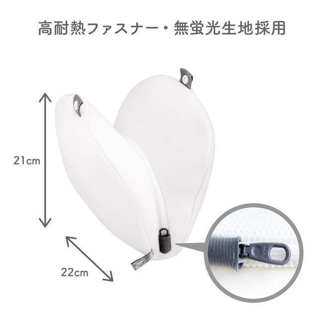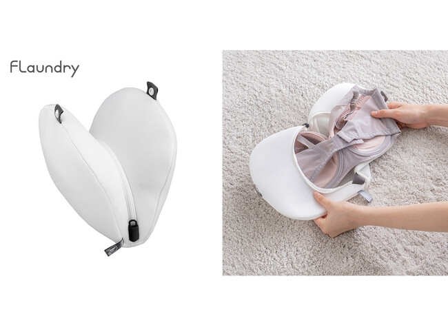 『フランドリー・ブラネットハート』は、カップを裏返したり、畳んだりせず入れられるブラジャー専用の洗濯ネットです。ハート型のポケットが左右のカップを別々に包み込み、洗濯中に発生する擦れやねじれを防ぎます。厚みが約3mmもある立体生地「無蛍光マシュマロメッシュ」は、クッションの役目を果たすので、洗濯時の衝撃を吸収して糸くずの侵入を抑えます。F〜Iカップなど大きめサイズのブラジャーにも対応しており、C〜Eカップなら2〜3枚収納可能です。肌が敏感な人や環境にも配慮し、自然な風合いの無漂白生地を採用しています。大きな引き手で使いやすい「しっかり高耐熱ファスナー」(YKK製)は、約2.5倍※2の耐久性を実現しているので長く使えます。