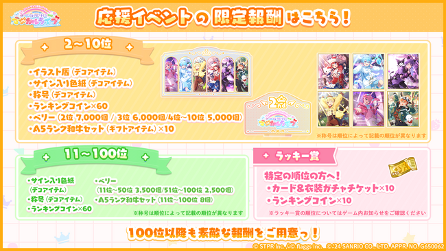 応援イベントのランキングの順位に応じて特別な報酬を入手することができます。